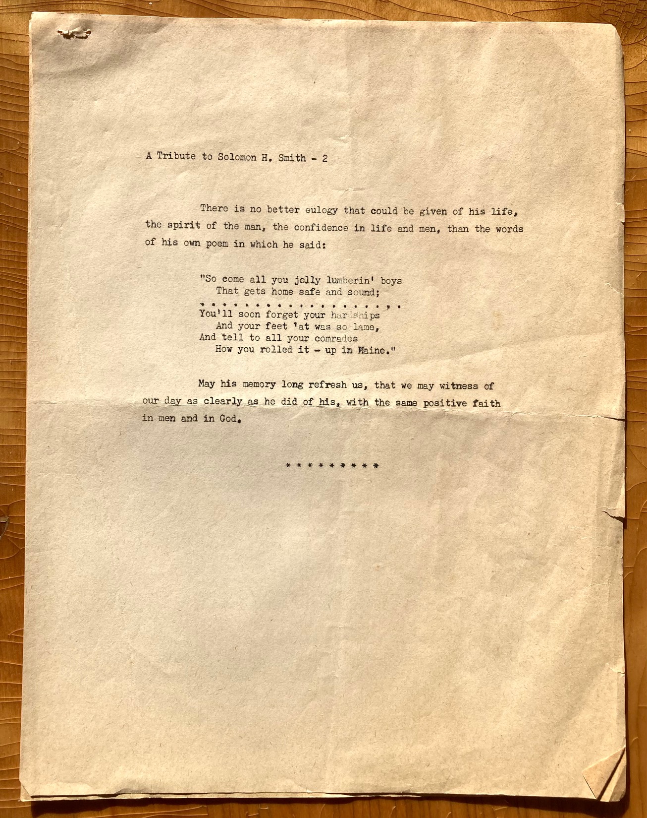 That’s pretty much all I knew about it until the other day when I came across an old document in a file folder. On two discolored pieces of paper is the typewritten “Tribute to Solomon H. Smith” that my father prepared for Solomon’s funeral. Some excerpts: